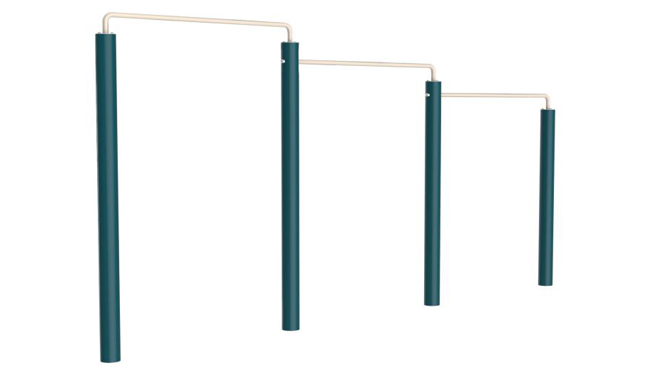 a.主要承載立柱尺寸:φ114×3.0mm; b.主要承載橫梁尺寸:φ28(圓鋼)mm; c.使用寬度1250mm,低杠面高度為1518,杠面高度為1693,杠面高度為1891mm,橫杠外徑28mm; d.杠面距地高度1891mm; e.安裝方式:采用直埋式、埋地深度:500mm; f.地基尺寸:500×500×600mm。 |