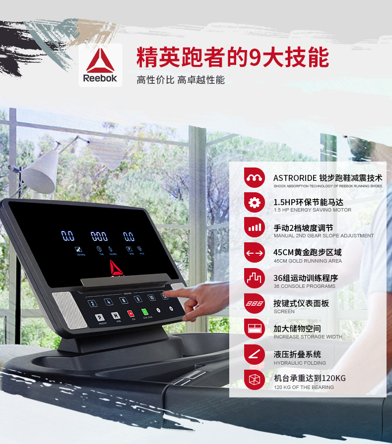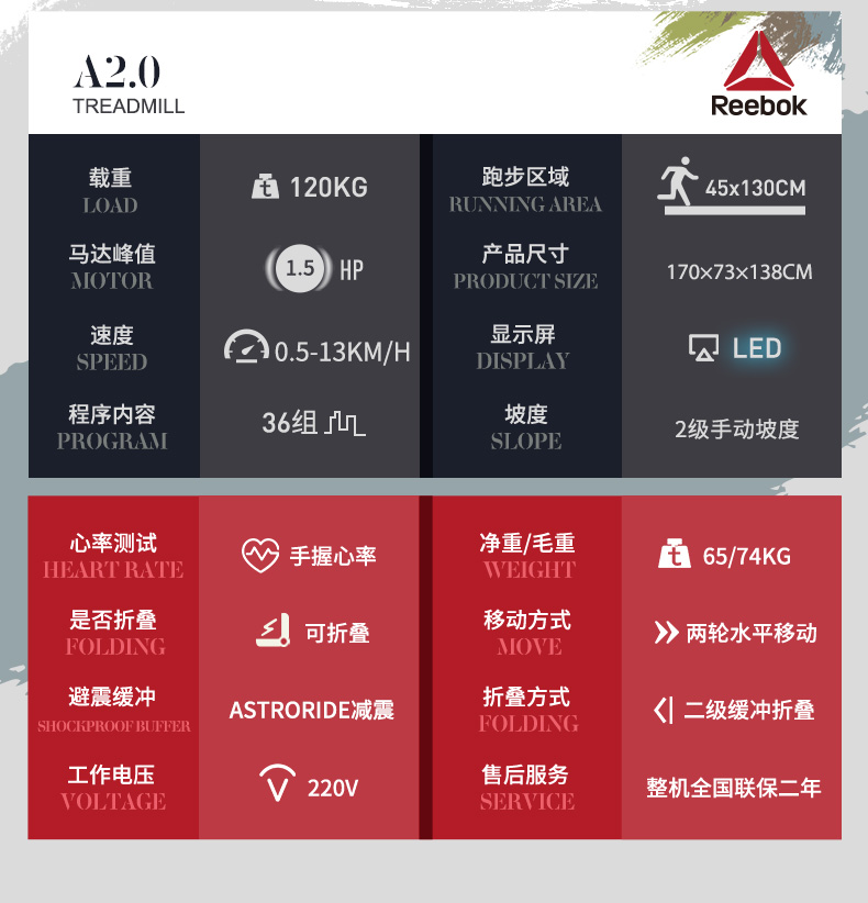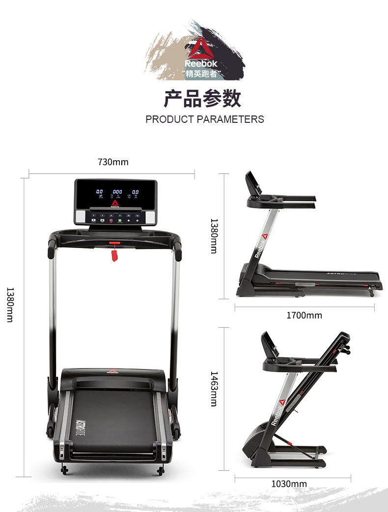 • 產(chǎn)品名稱:Reebok/銳步家用跑步機可折疊室內(nèi)超靜音運動器材健身房專用A2.0T